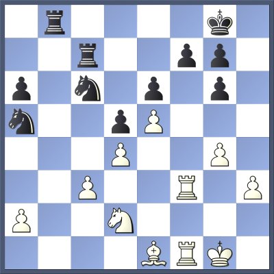 25. h3 Ne3 26. Rf3 Nf5 27. Bf2 Na5