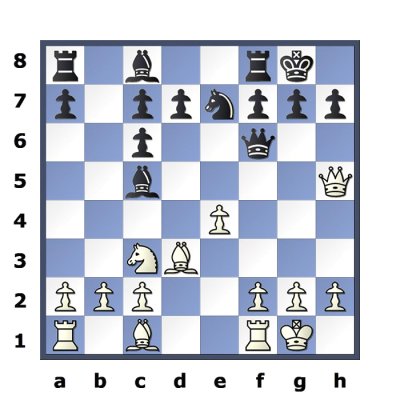 Playing Black, I resigned in this position. White has played Qh5, attacking my loose Bishop on c5. However, the real point of White's play comes if I retreat my Bishop to escape (or defend it any other way. Nothing works). In that case, White would have pushed his e-pawn to e5 (diagram 2) attacking my Queen and simultaneously opening up a threatened mate on h7. A deadly double attack.
