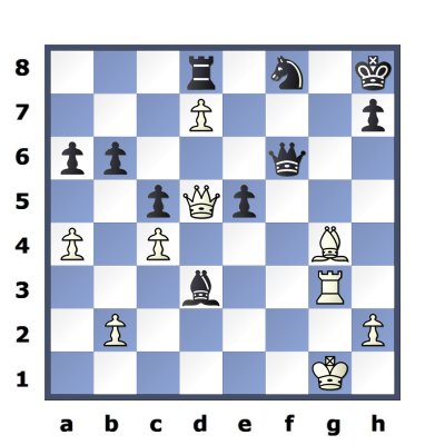 But Black's checking manoeuvre has uncovered an attack by his Rook on the Black Queen, which is captured the next move.