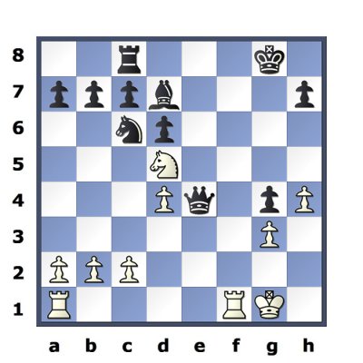 White captures the e4 Knight with his Queen, making Black capture back (diagram 2). White can then deliver the Knight fork with Nf6+, and (after capturing the Black Queen) ends up with a material advantage.