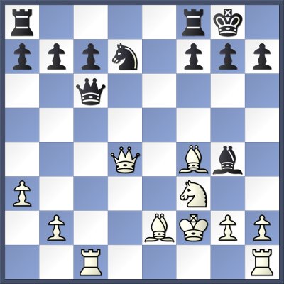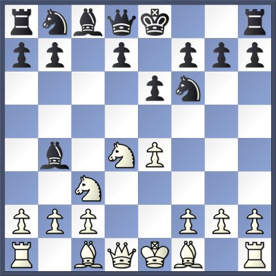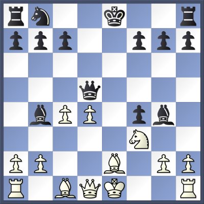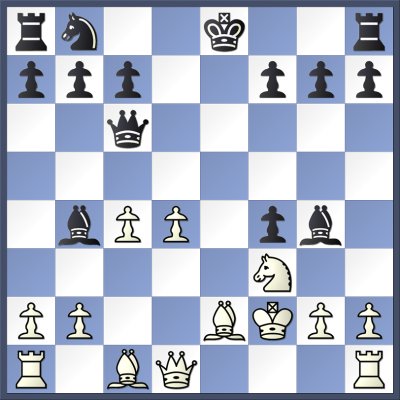 11...O-O 12. a3 Bxc5 13. dxc5 Qxc5+ 14. Qd4 Qc6 15. Bxf4 Nd7