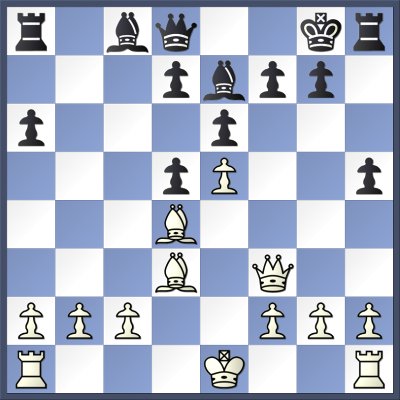 A lively variation of the Ruy Lopez Archangelsk. Black is now able to seize the a7-g1 dagonal for a while.